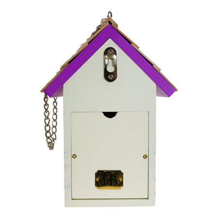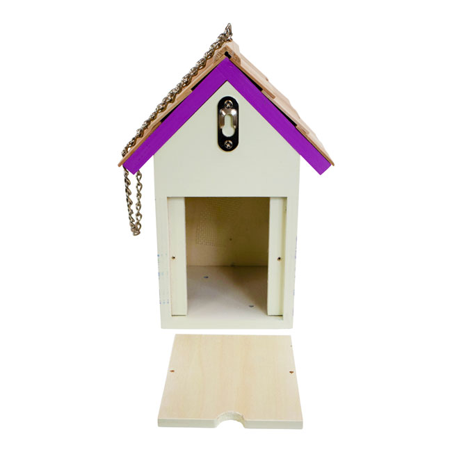- Additional, lighter purple trim around the entry hole and beneath the roof line offers contrast
