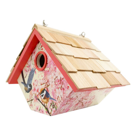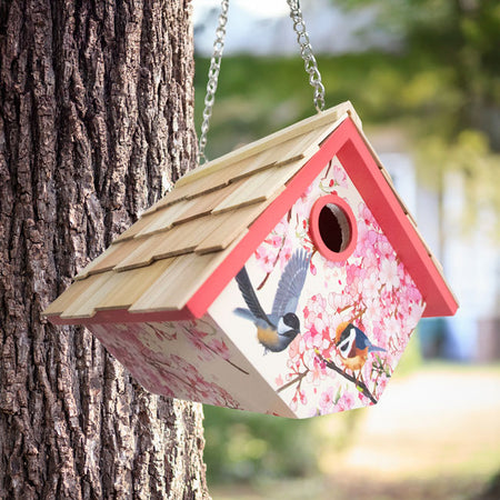Home Bazaar Hanging Wren House, Cherry Blossom w/Chickadee