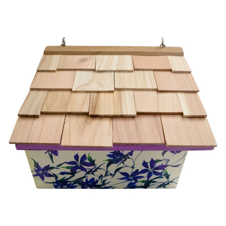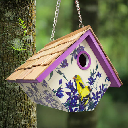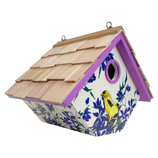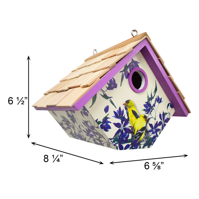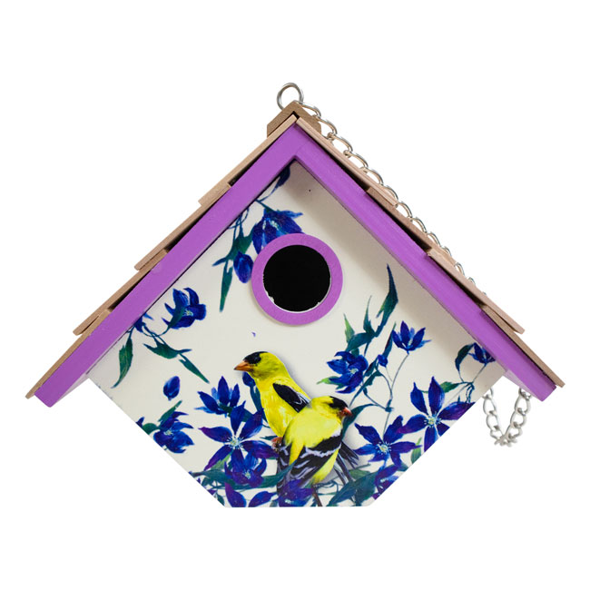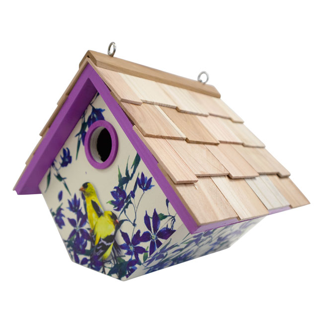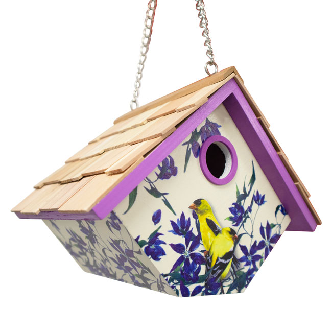 Brighten your bird sanctuary with hints of flowers and feathered friends using this Home Bazaar Goldfinch and Clematis Print Hanging Wren House.