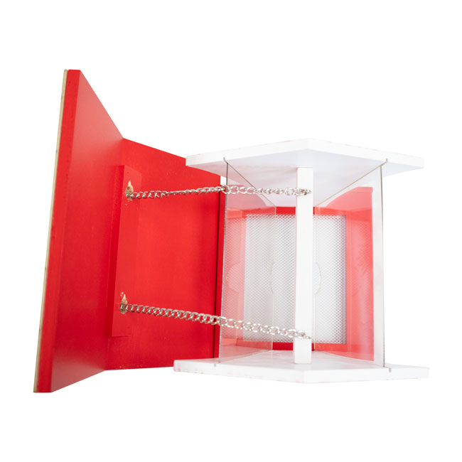 - Wooden platform around the mesh base offers strength, stability, and perching area