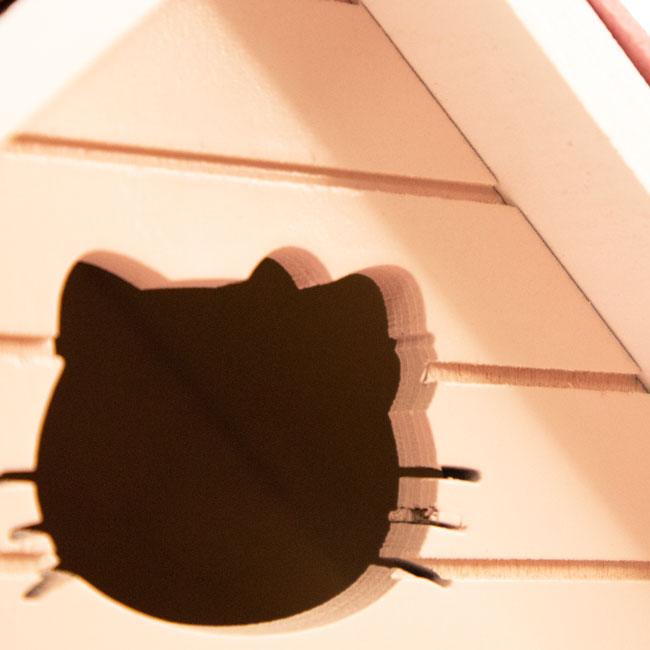 - Entry hole is shaped like the character's head, complete with whisker cutouts for details.