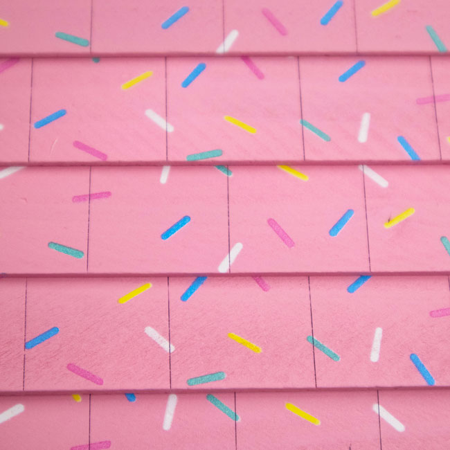 - Multi-colored flecks on the roof and awning mimic sprinkles for more colorful whimsy.