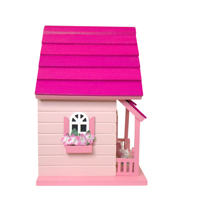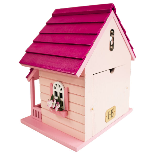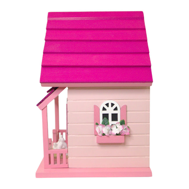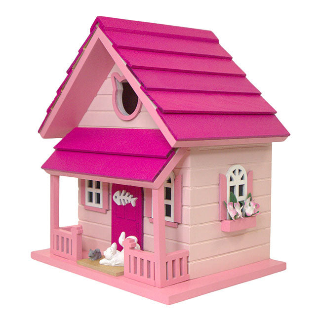 Put a bright, whimsical love of cats on display in your bird garden with this Home Bazaar Pink Kitty Cottage Bird House.