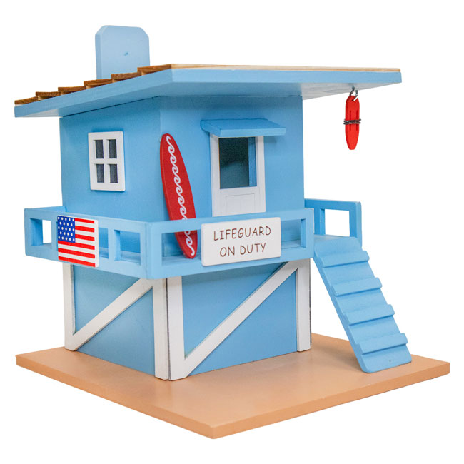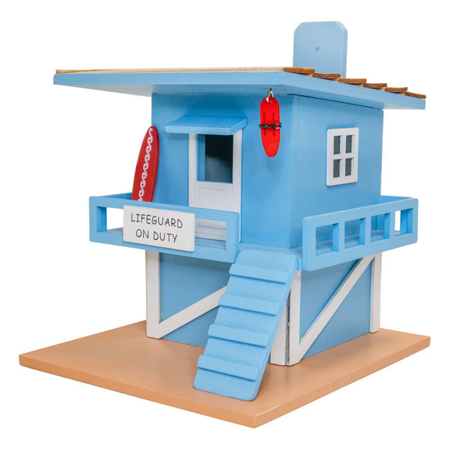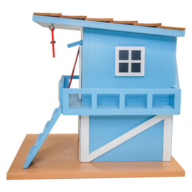 Provide songbirds a protected and thematic nesting site with this Home Bazaar Blue Lifeguard Shack Bird House.