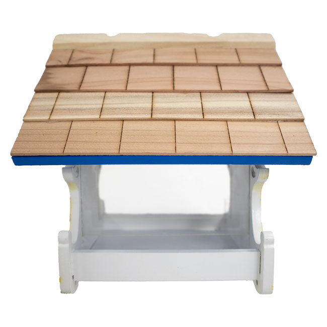 - Lift the roof easily to fill the feeding chamber with a variety of seed for a nutritious treat