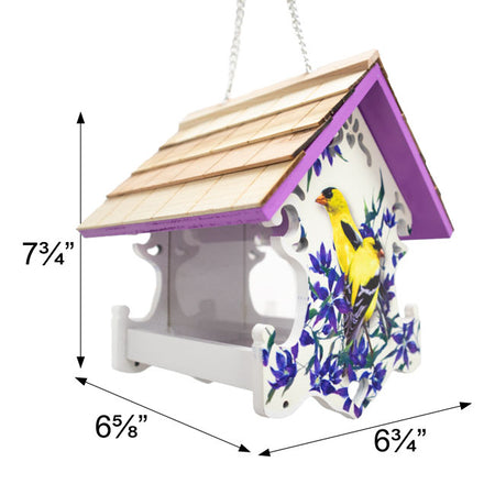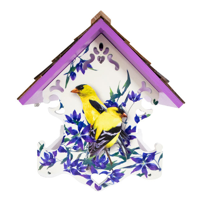 Bring birds to the garden for a lovely treat and infuse your yard with color and beauty using this Home Bazaar Goldfinch with Clematis Print Love Nest Bird Feeder.