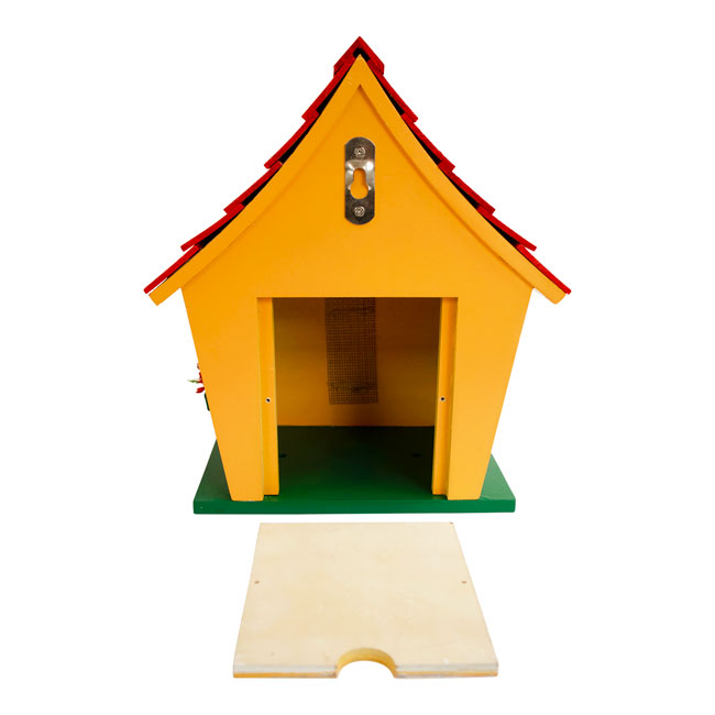 Add a dazzling showcase for your favorite animated character in the bird garden with this vibrant Home Bazaar Mickey Mouse Red and Yellow Bird House.