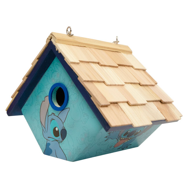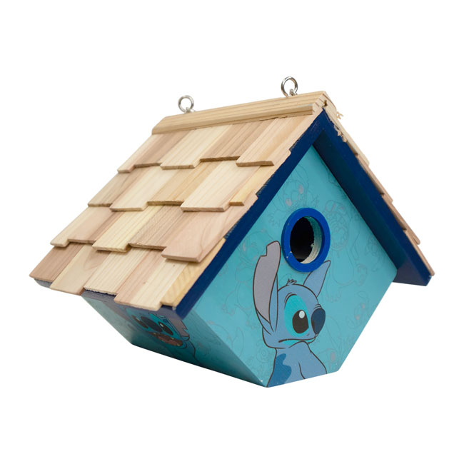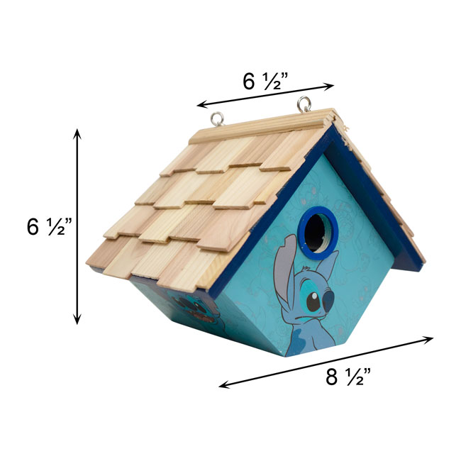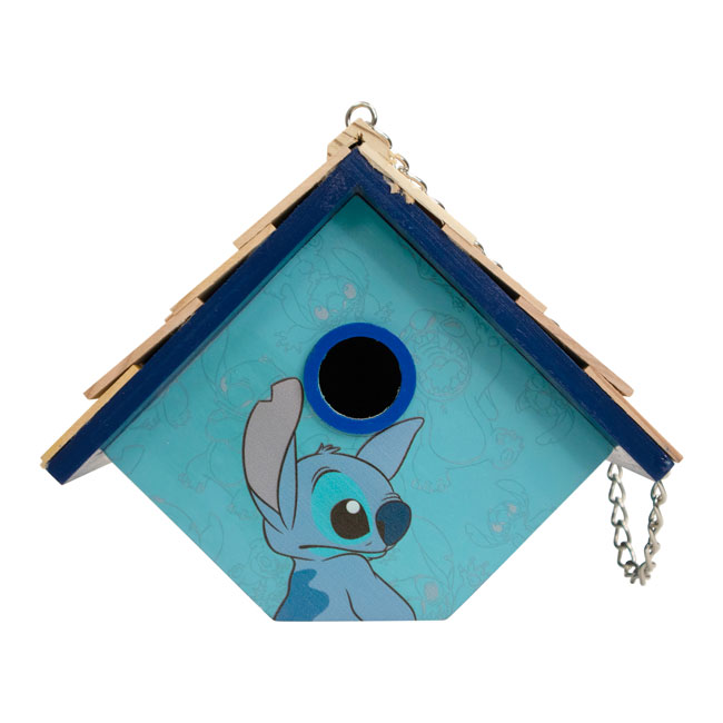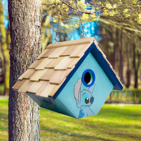 Celebrate a beloved cartoon character in your bird garden and appreciate lovely colors with this Home Bazaar Blue Stitch Hanging Wren House.
