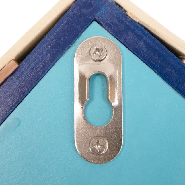 - Dark blue outline surrounds the entry hole and under the roof, for additional color contrast