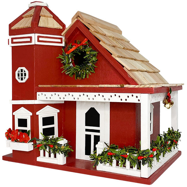 Home Bazaar Yuletide Cottage Bird House, Red
