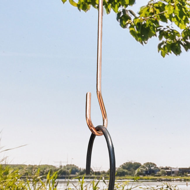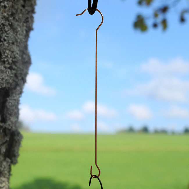 Add a bit more length to an existing hook or suspend a bird feeder from a nearby tree with this Copper Colored Iron Branch Hook.