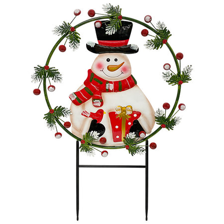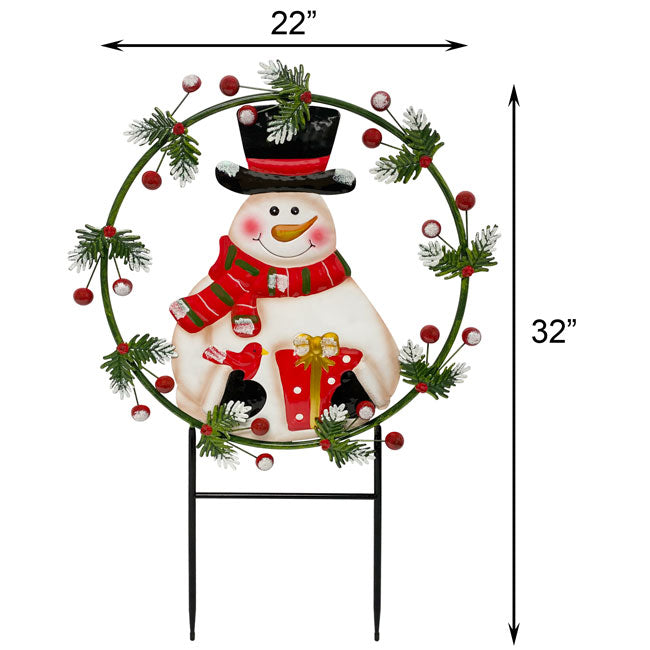 Land & Sea Metal Snowman and Wreath Staked Yard Art, 32"H