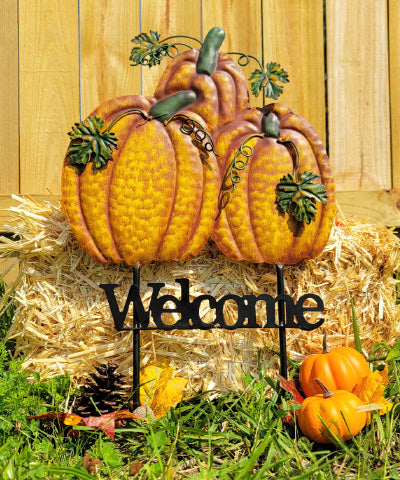 Land & Sea Metal Triple Pumpkins Welcome Yard Art