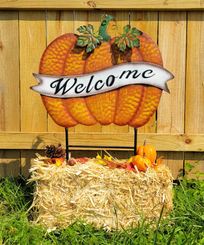 Land & Sea Metal Welcome Banner Pumpkin Yard Art
