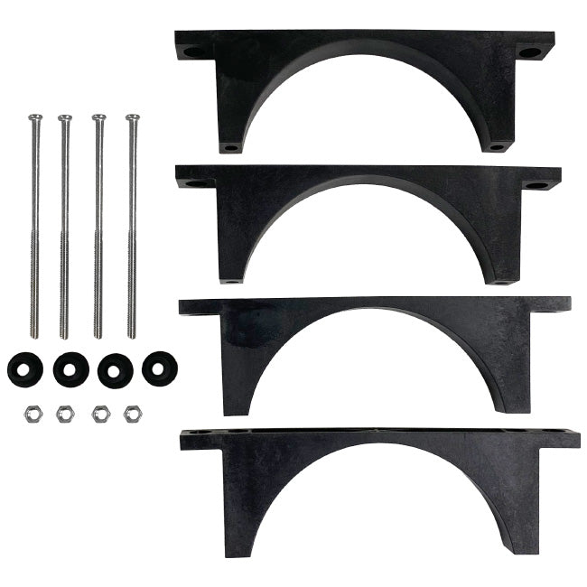 Keep your medium and large Little Giant Stainless Steel Pumps secured using these Little Giant Positioning Brackets. Two pairs of brackets are included to securely clamp around your existing Little Giant S580PT, S900PT, or S1200PT Stainless Steel Pump, along with four lengthy screws for fastening. Mount each bracket on a flat surface in your water garden or pond using additional waterproof hardware. Four included rubber grommets are threaded to support the screws, and also act as feet, helping in precise placement of the brackets. The plastic construction will remain reliable throughout many seasons and the black hue creates an unassuming support. Diversify your pump placement with these Positioning Brackets.