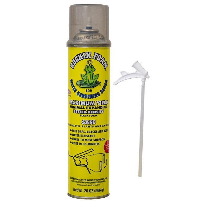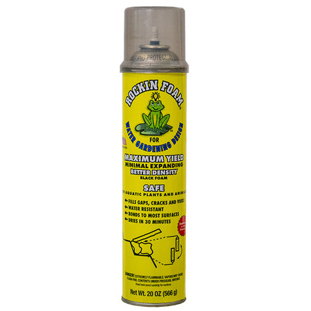 - 20 ounce container of black foam with a plastic nozzle helps direct water over rocks in a water garden.