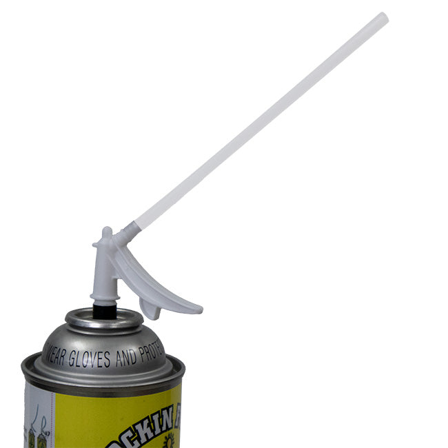 - Nozzle attaches to the top of the can, and allows the foam to be dispensed at any angle.