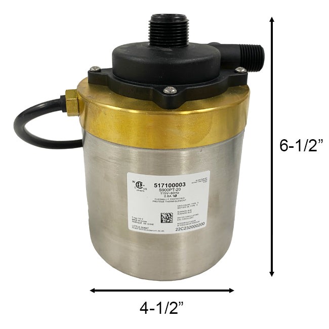 Keep your water feature well-circulated using this Little Giant S900PT Stainless Steel Pump. This pump is designed to meet the demands of a variety of water features or ponds, and will work in hot water applications up to 110 degrees Fahrenheit. A bronze pump body and stainless steel chassis, combined with corrosion-proof fasteners, form a verstaile and durable pump which stands the test of time as it provides energy-efficient water circulation.