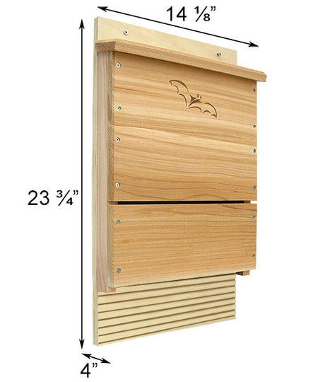Keep the insect population in check in a natural way with the Looker Products Single Celled Bat House Kit. Providing bats a roosting spot is a great way to celebrate the natural world, and this meticulously crafted home is based on over 10 years of research. The single chamber on this hardy home offers shelter to up to 100 bats, and routed lines throughout the interior creates plenty of places for them to grip. A 0.25" ventilation gap on the front of the unit prevents the bats from overheating in the 1.5" deep chamber, and a sloped roof protects the home from the elements. The cedar and plywood construction forms a durable shelter which will certainly age beautifully, and a bat icon burnt onto the front of the home lends a bit of style to your yard. Place the flat back of the unit against a tree, wall, or post, or add a mounting bracket (not included) to the item to pole mount it. The home assembles easily with the included hardware, and its traditional design will certainly withstand service for many seasons. Help bats thrive in your area by offering them shelter in this Single Celled Bat House Kit. Assembly required. Made in the USA.