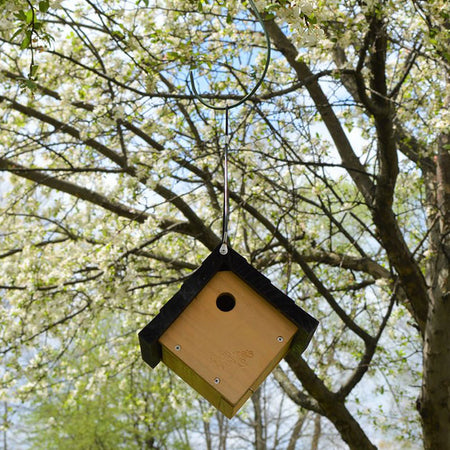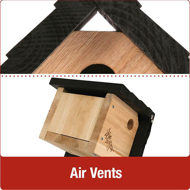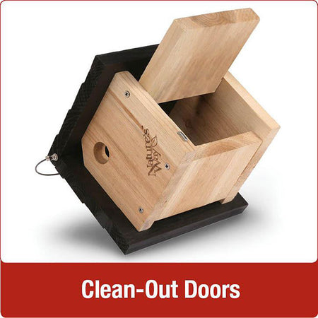 Provide shelter to wrens and chickadees all year using this Nature's Way Cedar Traditional Wren House. This classic, diamond shaped roosting box is a fantastic addition to your bird garden, while its 1.125" diameter entry hole is perfectly suited for chickadees or wrens. The black, pitched and lapped roof covers the tan, cedar body, while gaps beneath its overhang ensure the home remains ventilated. One side panel opens for easy nest checks, and an attached, vinyl coated cable allows you to hang the piece. Its all cedar construction lasts for several seasons of use, deterring rot and insect pests with its naturally occurring oils. House songbirds in your garden easily by placing this Cedar Traditional Wren House in it.