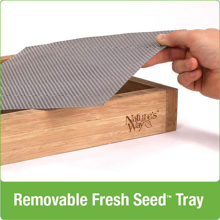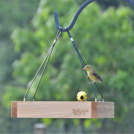 Enhance your garden with even more natural elements using this Nature's Way Cedar Tray Bird Feeder. The open design and hardy materials make this platform a wonderful addition to your bird sanctuary, while also inviting a wealth of birds to dine. Cedar planks form the classic, square frame, and a perforated metal base holds 2.1 quarts of seed, suet, or fruit easily. This screen not only creates an open feeding station; its perforations also provide drainage, and the section removes for thorough cleaning. Hang the feeder using the two attached cables, for a straightforward display for many seasons of service. Its cedar frame repels insects and rot naturally, for a lasting item, and the metal base provides strength and durability. Feed several bird species easily from this Cedar Tray Bird Feeder. Three year warranty.
