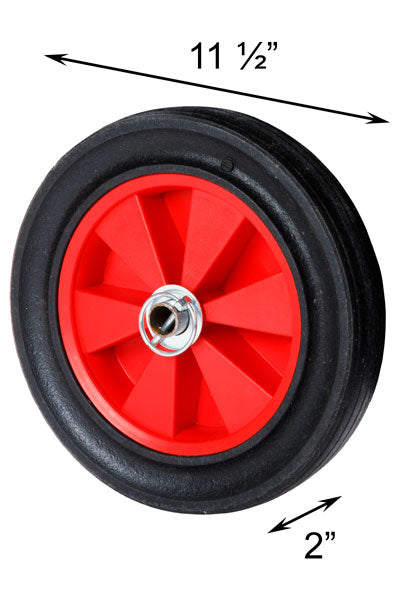 Dimensions: 11.5" dia. x 2" thick wheels; 1" O.D. x 43.75"L axle