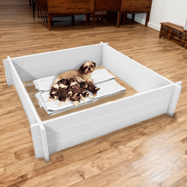 Offer your prized female dog a quiet spot for her next litter with this New England White Vinyl Whelping Box.