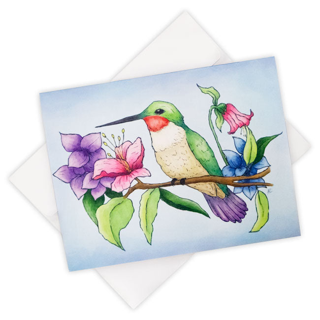 - Highly detailed illustration of a hummingbird on a branch brings beautiful color and natural style to each card.