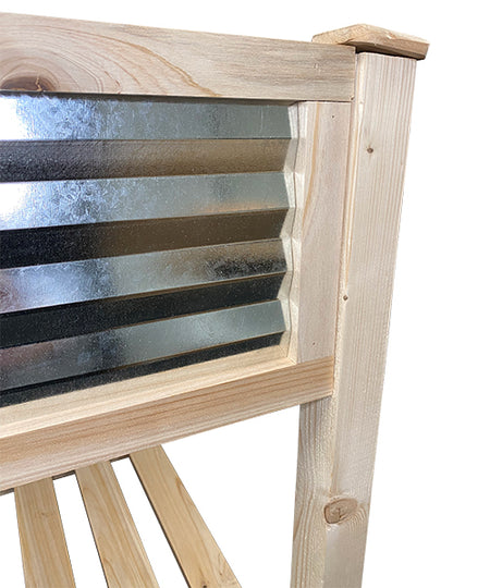 Transform a corner of your deck into a personal garden with this Panacea Cedar & Galvanized Steel Elevated Planter Bed. A raised planter on your patio creates a dedicated space for your favorite herbs, crops, or blooms at close proximity and without the strain on backs and knees. The durable, natural frame of the planter and bed ensures weatherability and simplicity, contrasting with the corrugated galvanized steel panels of the bed, which offer a rustic aesthetic for a distinctive garden. Four dog-eared and beveled-edged square caps provide visual appeal and help protect the seams at the corners of the bed from rain. Constructed of insect-resistant cedar, the bed itself can safely contain 4.86 cubic feet of soil while the slatted shelf underneath provides 8 square feet of storage space. The included fabric liner to contain soil within the bed makes for a tidy and kept garden, while the included narrow cedar slat offers additional support for the lower shelf. The planter assembles with provided Phillips-head screws requiring only the use of a screwdriver and is suggested to have an oil-base wood sealer applied to all wooden surfaces. Create a personal and sustainable garden space just outside your door with this Cedar & Galvanized Steel Elevated Planter Bed. Assembly required.