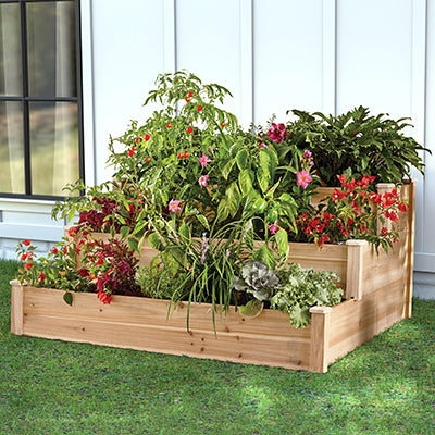 Panacea Cedar Three-Tiered Stair Step Garden Bed, 4'L x 4'W