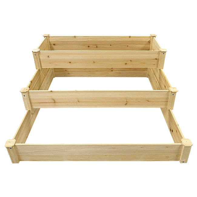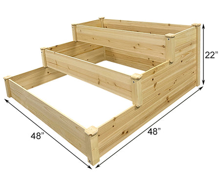 Maximize your backyard planting space with this Panacea Cedar Three-Tiered Stair Step Garden Bed. The tiered terrace design of this planter encourages planting and harvesting from crops with both shallow and deep root systems, while cleverly maximizing its bottomless growing space with a minimal footprint. The durable, natural frame of the planter ensures weatherability and simplicity, while its three beds provide an opportunity to display and house more herbs, crops, or blooms altogether. Eight dog-eared and beveled-edged square caps create visual appeal and help protect the seams at the corners of the bed from rain. Constructed with insect-resistant cedar, the beds themselves can safely contain 18.3 cubic feet of soil and offer 184 square feet of planting space. The planter assembles with provided Phillips-head screws requiring only the use of a screwdriver. Take advantage of more planting area and garden appeal while saving yourself yard space with this Cedar Three-Tiered Stair Step Garden Bed. Assembly required.