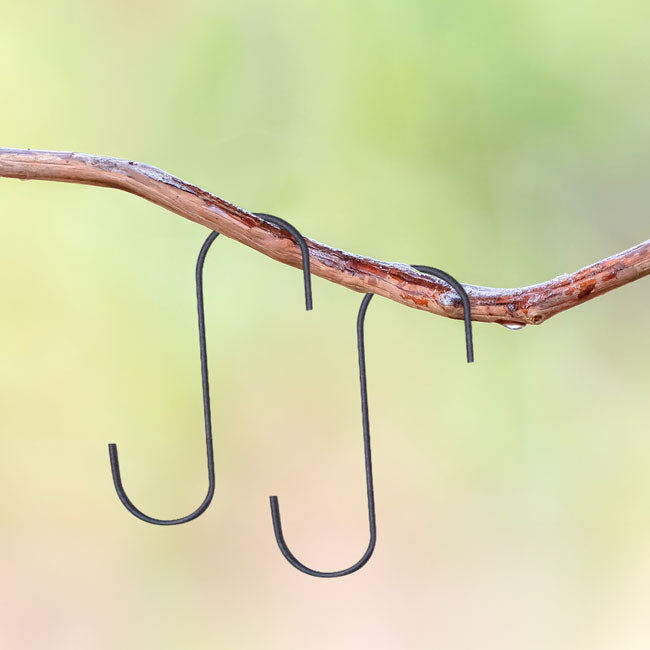 Use the Panacea Garden 'S' Hook to hang your ornaments in style. One end of this hook hangs on a small branch, trellis, or gutter, while the other holds your bird feeder, hanging basket, or wind chimes. The steel construction creates a sturdy hook, and the black powder coated finish will last for several seasons. Hang your decorations with this Garden 'S' Hook for years to come.