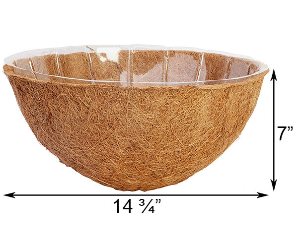 Help the plants in your existing hanging basket remain nicely hydrated with this Panacea Moisture Keeper Coco Liner. The classic shape and coco fiber construction of this item rests inside your existing, 14" diameter hanging basket, helping create a tidy bed for your flower. A recyclable plastic liner inside the coco fiber one retains even more moisture in the soil, while drainage holes prevent overwatering. Raised lines within this insert keep the unit wonderfully formed, holding plenty of soil and remaining slightly rigid in your basket. The recyclable materials lend an ecologically friendly hint to this item, while the brown tone of the coco fibers enhances the greenery of your plant. Maintain an existing hanging basket easily using this Moisture Keeper Coco Liner.