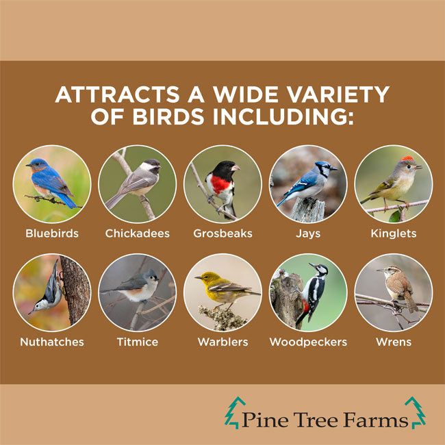 - bluebirds, chickadees, crows, flickers, grackles, jays, kinglets, mockingbirds, nuthatches, orioles, starlings, tanagers, titmice, towhees, warblers, woodpeckers, and wrens