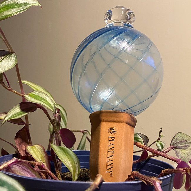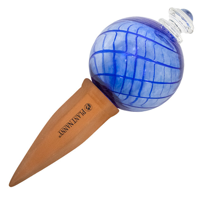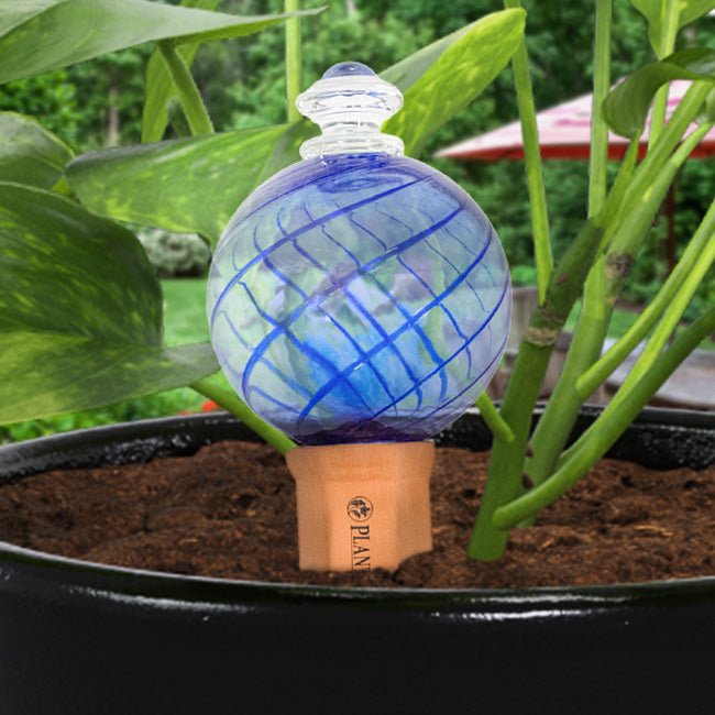 Bring vivid color and effortless watering to your favorite potted plant with this Plant Nanny Blue Spiral Watering Globe with Stake.