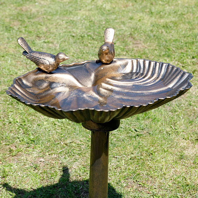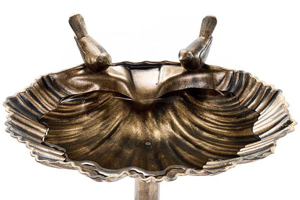 - Scalloped rim offers perching space, and dual bird figurines attach here for extra style