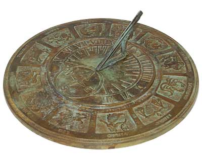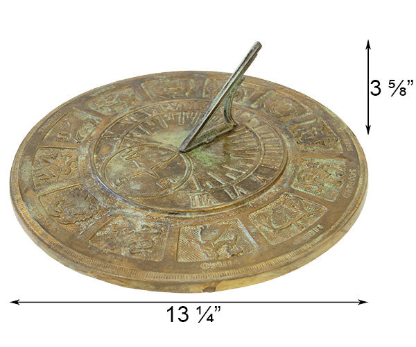 Rome Brass Zodiac Sundial, Aged Brass, 13.25" dia.