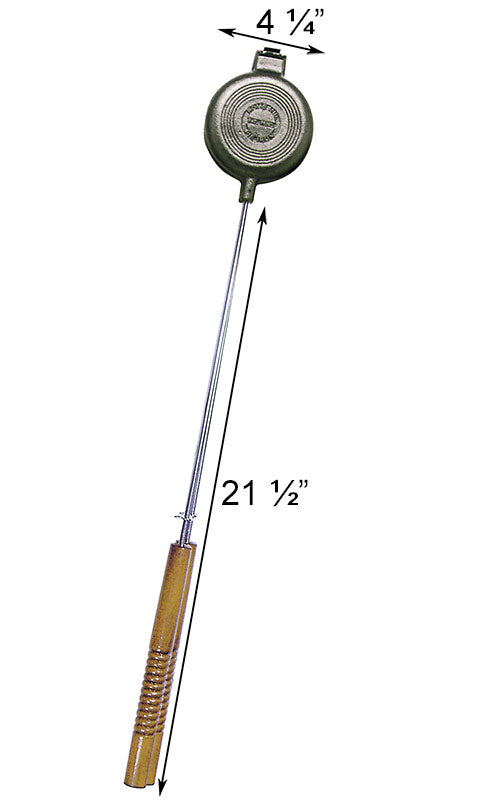 Dimensions: 4.25" dia. pie iron, 21.5"L handles