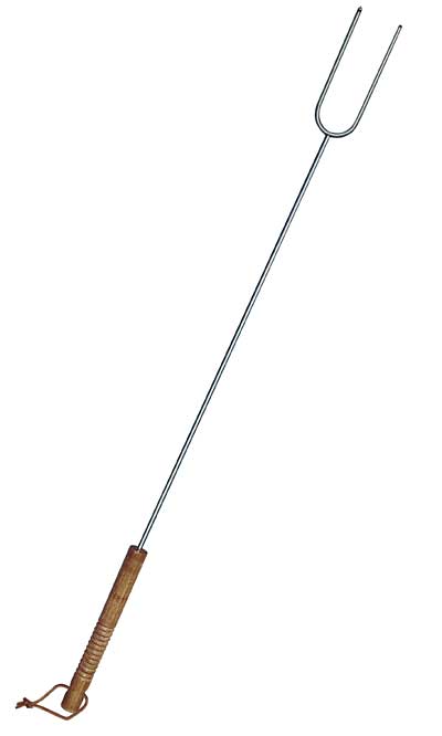 Cook a few sausages or hot dogs for a filling campfire dinner using this Rome Classic Campfire Hot Dog Fork Roaster. The timeless design and lasting materials make this fork a fantastic addition to your grilling utensils. The two, 7" long tines hold a generous amount of food, and their chrome plated steel construction helps the food cook both inside and out simultaneously. A 26.25" long shaft keeps you safely away from the flames, while a wooden handle at the base provides an insulated and comfortable grip. The leather strap allows the item to hang for easy storage when not in use, and rubber caps cover each tine for extra safety. Roast your favorite campfire snacks easily with this Classic Campfire Hot Dog Fork Roaster.