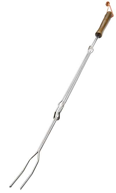 Ensure your food cooks over open flames while remaining a good distance away from them using the Rome Extension Roasting Fork. The classic shape and lasting construction will make this unit a favorite tool for all your outdoor cooking, while its innovative, expandable feature helps kids stay safe. Two, 2.5" long metal tines easily spear a hot dog or mett, and the chrome plated steel heats quickly and evenly. The shaft extends up to 23" long, and telescopes into itself for convenient transportation and storage. A flared section of the shaft acts as a lock, stopping the fork from coming apart or sliding down during use. The 4.75" long, wooden handle adds a bit of insulation, and its rounded shape makes holding the unit comfortable. Safely cook over a fire with help from this Extension Roasting Fork.