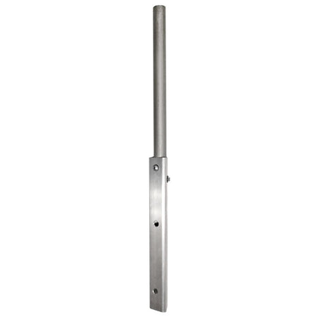 Increase the functionality of your existing triangular telescoping pole with this Round Pole Adapter for Triangular Poles by Prime Retreat. This adapter is an updated version of the S&K Round Pole Adapter Plus, and readily allows you to use a house or feeder designed for a round pole with your triangular one, giving you a versatile and durable garden addition. The lower end slides over the top section of a telescoping, triangular pole, while dual holes on the aluminum sleeve secure this section in place with the pole's existing snaps. A 14" long, cylindrical tube extends upward from this sleeve, installing into select martin houses requiring 1.25" outer diameter round poles. This galvanized steel section can accommodate a mounting bracket to hold a bird feeder or flat based home, or it may install through select martin houses for increased height and support. Three screws with rubber washers connect the two elements together, and are offset on the base for reduced stress. Silicone around the base of the steel tube completes the joint and keeps rain out of the sleeve, and the durable materials are reliably designed to withstand repeated use. Repurpose your existing triangular pole in a fun and convenient new way with help from this Round Pole Adapter for Triangular Poles.