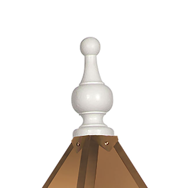 - Topped with a classic white finial or upgrade to a miniature weathervane (not included) for added charm