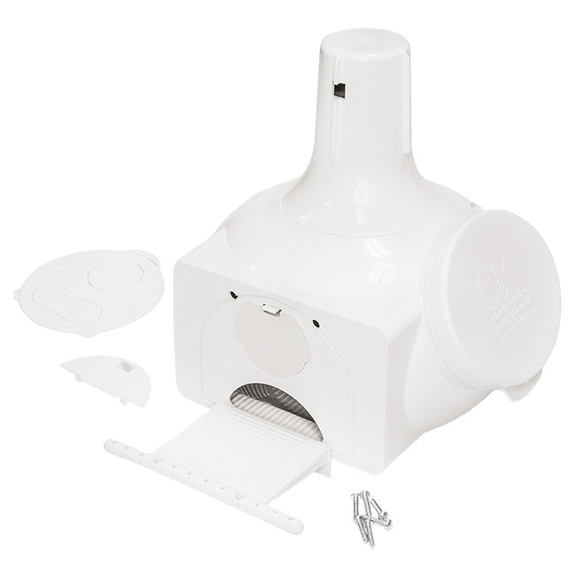 Encourage purple martins, bluebirds, or tree swallows to roost in your bird garden by placing this fantastic and convenient S&K Bo Nine Classic Combo Martin or Bluebird Gourd in it. This molded plastic unit sports a white complexion for a cool domicile and offers an abundance of handy features meant to give birds a more intuitive and reliable shelter as they populate your outdoor space. An 8” deep nesting chamber gives a wealth of space for martins or bluebirds to roost, and the variable, dual entry setup lets you choose between a round or starling-resistant, crescent entrance. Optional door plugs can be fastened over these martin entrances, letting you convert the round entrance to a 1.5” diameter, bluebird friendly access hole or change the oval opening to accommodate tree swallows. A 3” porch easily snaps into place just beneath the customizable entrance to afford generous perching space for martins approaching the unit, and a non-slip, textured interior lets them gain a suitable grip inside the chamber. The gourd’s intuitive neck turns easily to let you orient the dwelling however you wish without altering the position of your gourd rack or hanger. An included cap easily covers the 5” x 4” oval access and can be removed in moments to perform maintenance checks and monitor activity within the gourd. A helpful “dry nest” drainage system ensures the home remains fresh and comfortable, as gaps in the gourd’s bottom prevent moisture from accumulating and spoiling the space. The durable, molded plastic construction lets you enjoy this item for many seasons of reliable service, accelerating your backyard birding décor as you provide shelter for a variety of unique, feathered friends. Give entertaining bluebirds, tree swallows, or purple martins a suitable and charming home where they can comfortably thrive with the Bo Nine Classic Combo Martin or Bluebird Gourd. Assembly required. Made in the USA.