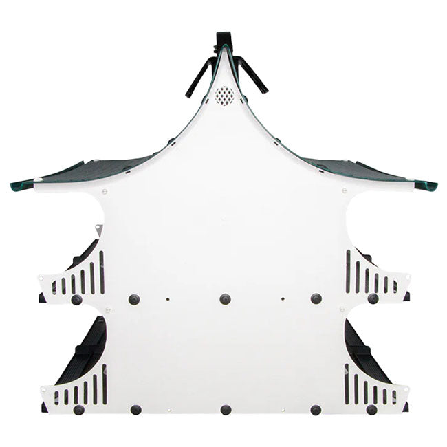 - White sides help regulate temperature, and the green roof provides color and protection from outdoor elements