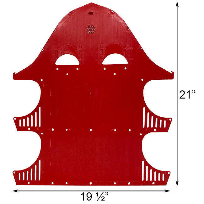 Replace a worn or damaged side panel on one of your existing S&K martin barns with this S&K Red Replacement Side Panel for BN-16 Purple Martin Barns. This preformed, plastic sheet creates a tall side for an existing S&K BN-16 Purple Martin Barn, allowing you to maintain the shelter for many seasons. The specific shape of this wall aligns perfectly with the roof line and floors of your existing nesting box, and predrilled holes accommodate screws for a secure connection. Impressed vertical lines and shutter shapes within the red frame lend it texture and realism, and a gridded hole at the peak offers ventilation. Repair a damaged side panel of your existing, plastic martin barn with this Red Replacement Side Panel for BN-16 Purple Martin Barns. Made in the USA.
