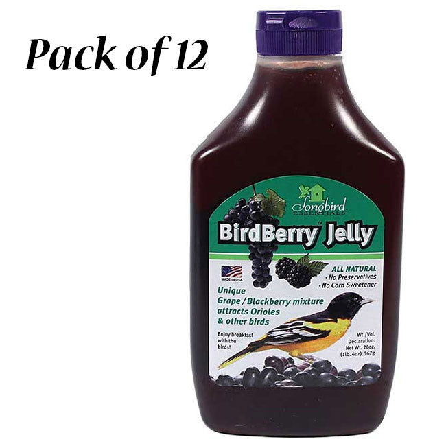 Offer a whole host of orioles one of their favorite treats in the garden with this Pack of 12 bottles of Songbird Essentials BirdBerry Jelly.