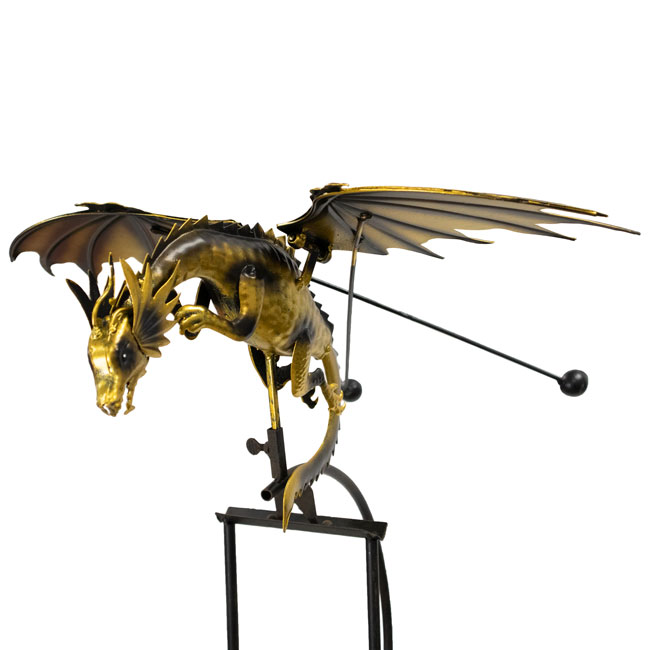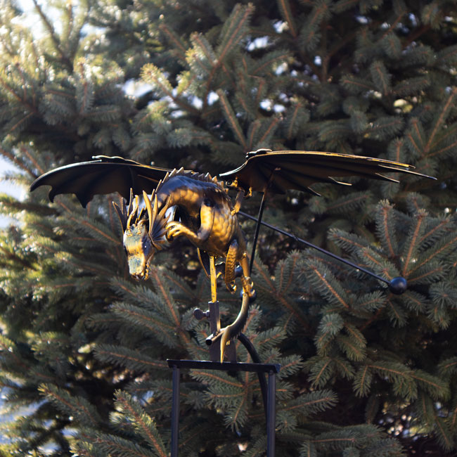 - The lengthy tail curls beneath the dragon's clawed feet and arresting body for standout yard decor