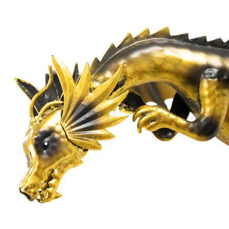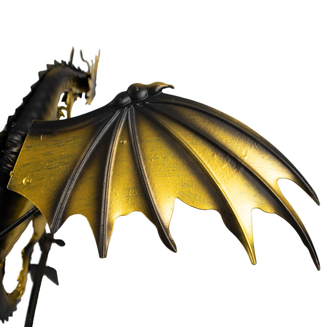 - Mythical, realistically rendered dragon figure stands tall with gorgeous detailing and striking gold coloration