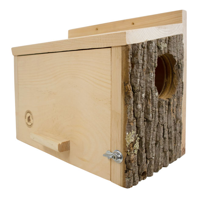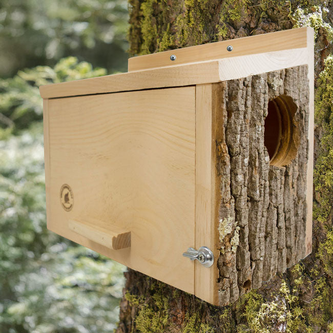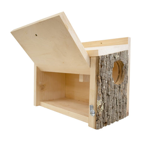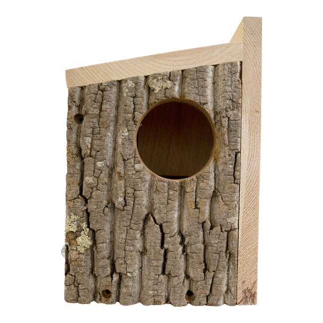- Durable, bark clad nesting box gives ample space for squirrels in need of a warm place to rest or spot to roost