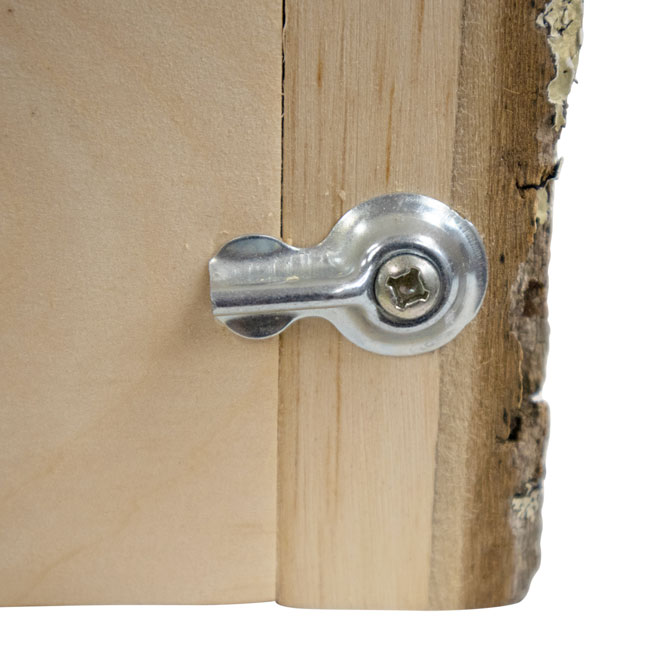 - Crafted from pine, the box features a poplar bark clad front panel for natural, outdoor appeal